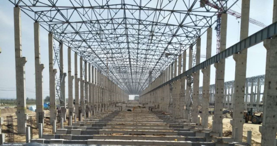 提到內(nèi)蒙古達(dá)拉特旗,人們會自然聯(lián)想到風(fēng)景優(yōu)美的庫布齊沙漠和響沙灣風(fēng)景區(qū),這里大漠浩瀚、瑰麗壯觀,是全國著名的沙漠旅游風(fēng)景區(qū)。但對于踏上這片沙漠的建設(shè)者來說,飛沙揚(yáng)礫、綿延千里的沙漠只是他們征戰(zhàn)的沙場。2017年大年初六,大多數(shù)人們還沉浸在春節(jié)的團(tuán)圓喜慶之中,而項(xiàng)目部的管理人員卻已經(jīng)在一片春寒料峭中,開啟了嶄新的征程。從辦公區(qū)到制作區(qū),從選址到場地建設(shè),項(xiàng)目部在極短的時(shí)間內(nèi)完成了前期準(zhǔn)備工作。沙塵頻發(fā)且風(fēng)力較大,晝夜溫差極大,干燥少雨,冬寒夏熱,達(dá)拉特旗典型的沙漠氣候讓建設(shè)者們切切實(shí)實(shí)地領(lǐng)略了一把“大漠風(fēng)光”。由于甲方原因,該項(xiàng)目整體工期較其他單位相比,整體滯后了約五十天。項(xiàng)目部于六月初開始基礎(chǔ)施工,就面臨著工期緊張、場地狹小、交叉作業(yè)、自然條件惡劣等諸多困難,這著實(shí)考驗(yàn)著項(xiàng)目部的戰(zhàn)斗力和鋼結(jié)構(gòu)公司的管理水平。轉(zhuǎn)變思路,調(diào)整定位,中國二冶將該項(xiàng)目列為重點(diǎn)監(jiān)管工程,從人員配置、對接溝通、技術(shù)方案、物料準(zhǔn)備,方方面面都做足了功課,堅(jiān)決不打無準(zhǔn)備之仗。集團(tuán)重視、部門支持、項(xiàng)目部發(fā)力,多方協(xié)調(diào)齊抓共管之下,項(xiàng)目部科學(xué)管理,合理安排工期,將人員進(jìn)行分組,倒排工期,晝夜施工。頂著寒風(fēng),踏著積雪,迎著黃沙,從場地平整,到大臨建設(shè),從2017年6月5號基礎(chǔ)施工開始,到首榀予制柱吊裝成功,從500KA電解槽首臺樣槽落成,到8月5日屋頂主框架形成,建設(shè)者們斗嚴(yán)寒,戰(zhàn)酷暑,搶工期,抓進(jìn)度,在短短的三個(gè)月時(shí)間內(nèi),完成了鋼結(jié)構(gòu)制作安裝近一萬噸的工作量,1#、2#煙氣凈化系統(tǒng)全部完成,電解槽基礎(chǔ)及短柱施工累計(jì)完成92臺。11月2日,一節(jié)長41米,重26噸的氧化鋁輸送通廊,由200噸履帶吊順利安裝到位,標(biāo)志著氧化鋁車間關(guān)鍵的通廊節(jié)點(diǎn)順利完成。12月6日,2#電解車間92臺電解槽上部結(jié)構(gòu)制作任務(wù)全部完成。質(zhì)量好,進(jìn)度快,這樣的“鋼結(jié)構(gòu)速度”贏得了多方的高度贊譽(yù),并獲得了甲方的獎勵(lì),為后續(xù)市場的開拓奠定了基礎(chǔ),為中國二冶贏得了良好的口碑,也標(biāo)志著鋼結(jié)構(gòu)公司亮劍大型綜合類施工項(xiàng)目首戰(zhàn)告捷。