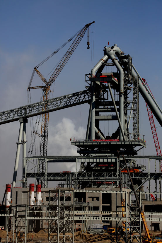 “接桿”任務(wù)完成了,高爐主皮帶通廊A6段便具備了吊裝條件。在起吊的哨聲下,360噸履帶吊和4000噸.米塔吊的相互配合,將高爐主皮帶通廊A6段吊起,并穩(wěn)穩(wěn)的落在ZJ4支架和標(biāo)高為66.855米平臺(tái)上,實(shí)現(xiàn)了一次性成功吊裝。至此,包鋼8#高爐主皮帶通廊和高爐本體全面貫通,項(xiàng)目部打了一場(chǎng)漂亮的攻堅(jiān)戰(zhàn)。