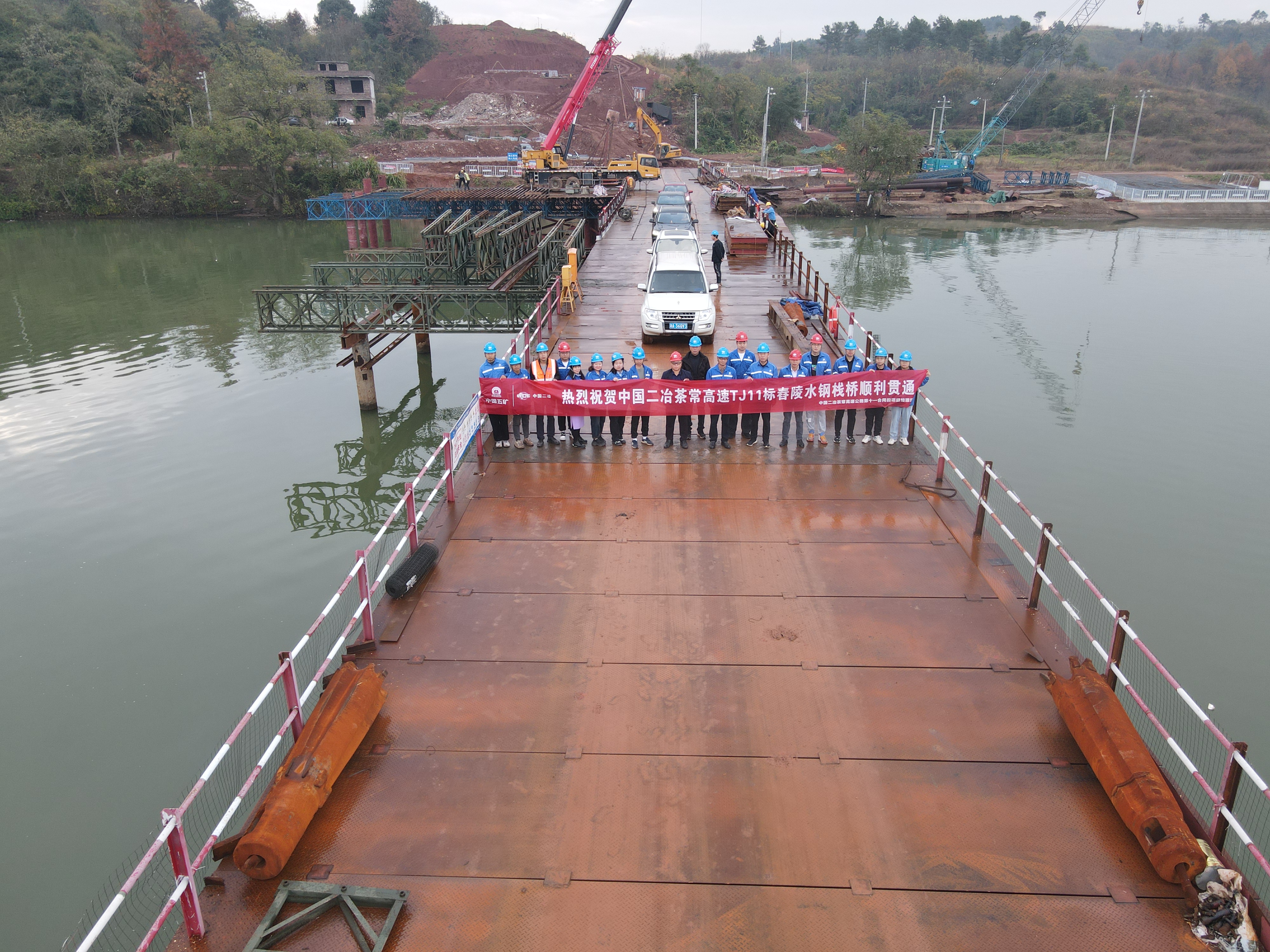 12月10日,湖南分公司茶常高速第十一合同段舂陵水大橋鋼棧橋正式合龍,標(biāo)志舂陵水南北兩岸正式聯(lián)通,不僅為后續(xù)舂陵水大橋主體結(jié)構(gòu)施工打下堅(jiān)實(shí)基礎(chǔ),同時(shí)對(duì)舂陵水南北兩岸的路基施工也起到積極的促進(jìn)作用,對(duì)于全線施工有著至關(guān)重要的意義。