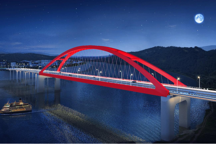該工程路線全長4.447千米,新建路段長2.167千米,共設置橋梁2座,分離式立交1處,主要建設內容包括道路工程、橋梁工程、交安工程及相關附屬配套設施。其中,馬躍巖大橋是橫跨涪江、連接南壩北壩的特大橋梁,橋梁全長701米,下部結構設計為樁基礎共76根,最大樁徑2米,最大樁長24米。