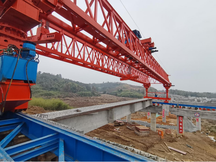 為有效保障橋梁架設質量和效率,項目團隊爭分奪秒,克服了冬季雨水多、氣溫低等困難,嚴格落實施工進度計劃,組織召開專題部署會,反復推演施工過程。從制梁、運梁到架梁各個環(huán)節(jié),進行周密計劃,制定詳細架梁方案,并積極協(xié)調各有關部門,合理配置資源,優(yōu)化施工工序,全力保障本次架梁施工安全平穩(wěn)進行,一次性落位成功。