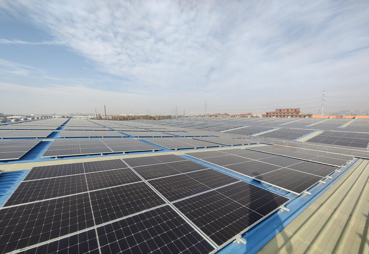 1月28日,中原分公司溫縣光伏發(fā)電項(xiàng)目首個廠房屋頂光伏組件鋪設(shè)工作順利完成。