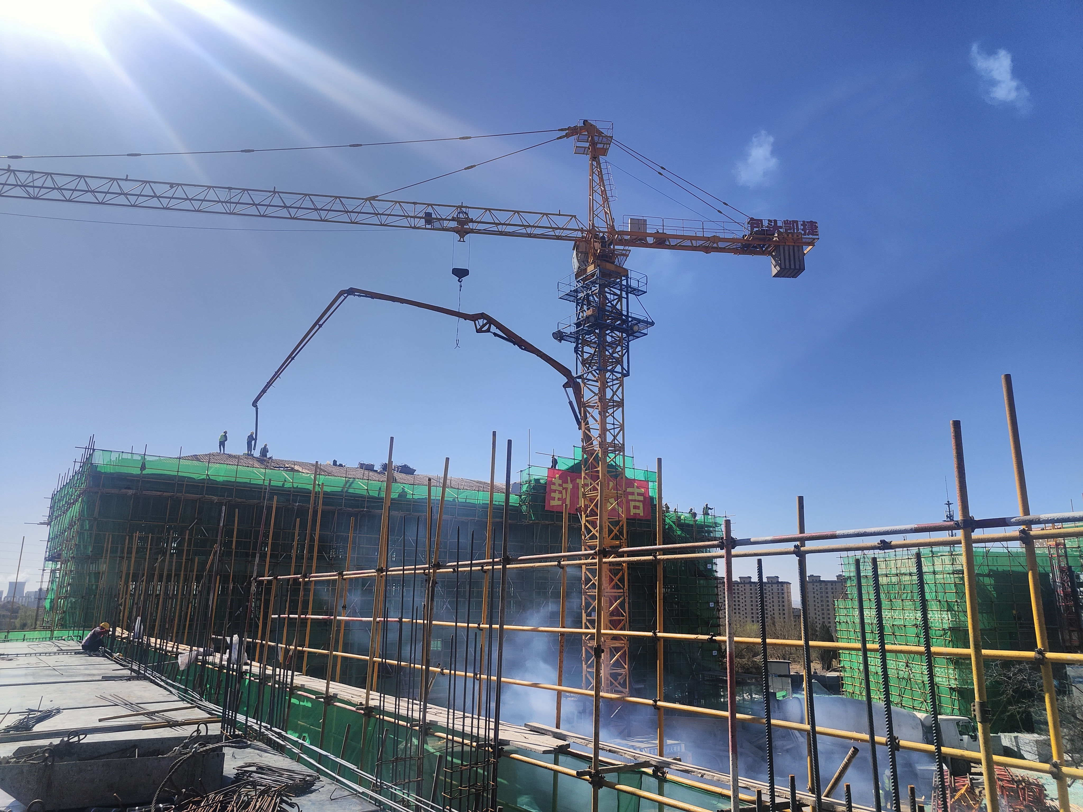 本項(xiàng)目是包頭市進(jìn)一步提高和改善民生水平,創(chuàng)造美好生活,發(fā)展健康產(chǎn)業(yè),構(gòu)建和諧社會的民生項(xiàng)目。項(xiàng)目位于包頭市東河區(qū)轉(zhuǎn)龍藏公園區(qū)域、外環(huán)路以南,周邊歷史遺產(chǎn)豐富、交通便利、文化氛圍濃厚。該項(xiàng)目屬于包頭市總工會的重點(diǎn)項(xiàng)目,總建筑面積12133.52平方米。其中,2#修養(yǎng)樓總建筑面積3330平方米,柱下獨(dú)立基礎(chǔ),主體為4層框架結(jié)構(gòu),坡屋面,抗震設(shè)防烈度8度。工程開工后,項(xiàng)目部突破深基坑施工難度大、有效工期縮短、任務(wù)繁重等重重困難,克服包頭地區(qū)刺骨寒風(fēng),采取兩班倒通宵作業(yè)的施工方法,掀起“搶工期、保節(jié)點(diǎn)、保履約”施工熱潮,大干快上,頑強(qiáng)拼搏,相繼完成土方開挖,墊層、基礎(chǔ)施工、4層主體結(jié)構(gòu)混凝土澆筑任務(wù),順利實(shí)現(xiàn)主體結(jié)構(gòu)封頂目標(biāo)。