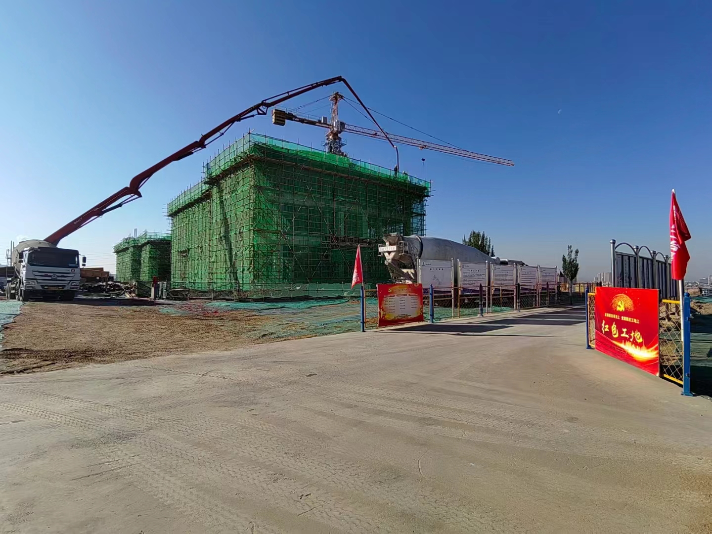 本工程坐落于包頭市東河區(qū)轉龍藏公園區(qū)域、外環(huán)路以南,周邊歷史遺產豐富、交通便利、文化氛圍濃厚,總建筑面積2446.23平方米,四層框架結構,坡屋面,柱下獨立基礎。主要包括基礎、主體結構、裝飾、給排水、消防及暖通、強電、弱電、園林景觀、精裝修等施工內容。工程破土動工后,項目部接到業(yè)主通知,重新下達網(wǎng)絡工期,由計劃工期374天壓縮到224天,任務相當艱巨,時間相當緊迫。面對困難,項目部管理人員分工明確,各負其責,加足馬力,迅速切換到“奮戰(zhàn)模式”,掀起勞動競賽大干熱潮,堅守一線,加強工程技術、質量、安全監(jiān)督,確保工程保質保量加速推進。連日來,120名項目建設者戰(zhàn)嚴寒,頂強風,加快鋼筋綁扎、支模、混凝土澆筑等重點工序施工進度,施工圖變成奮進圖,機器轟鳴聲不絕于耳,塔吊林立,熱火朝天,主體結構快速向上攀升,“五一”國際勞動節(jié)當天,隨著最后一塊屋面板的澆筑完成,標志著1#綜合樓封頂大吉。