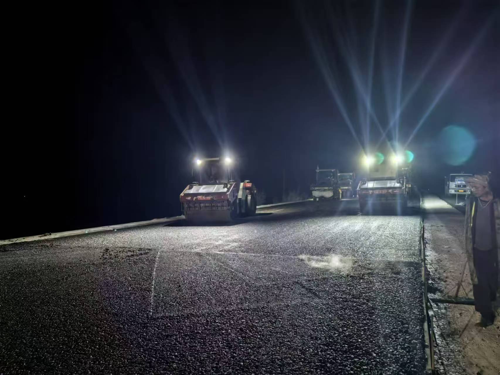 此次主線瀝青下面層的順利貫通,?是項(xiàng)目建設(shè)過程中的一個(gè)重要節(jié)點(diǎn)。?自項(xiàng)目啟動(dòng)以來,?建設(shè)團(tuán)隊(duì)克服天氣多變、地質(zhì)條件復(fù)雜、?施工難度大等重重困難,?精心組織、?科學(xué)施工,金秋多雨,項(xiàng)目組織利用雨停間隙拼搶工期,?確保了工程質(zhì)量和進(jìn)度的雙重推進(jìn),?特別是在路面施工過程中,一線作業(yè)人員嚴(yán)格按照設(shè)計(jì)標(biāo)準(zhǔn)和施工規(guī)范,?采用先進(jìn)的攤鋪設(shè)備和施工工藝,?確保了瀝青下面層的平整度、?密實(shí)度和耐久性,?為后續(xù)上面層的攤鋪及整體路面質(zhì)量的提升打下基礎(chǔ)。??