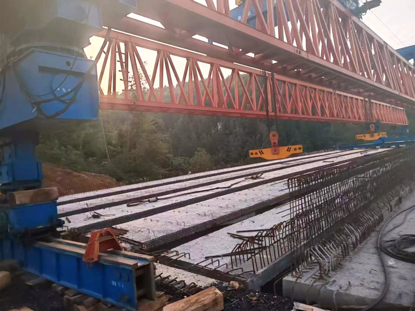 施工過(guò)程中,全橋共使用2臺(tái)架橋機(jī),4臺(tái)運(yùn)梁車(chē)進(jìn)行施工。項(xiàng)目全線橋梁巖溶發(fā)育強(qiáng)烈,見(jiàn)溶率較高,橋區(qū)地質(zhì)情況復(fù)雜,歷時(shí)一個(gè)月,項(xiàng)目團(tuán)隊(duì)上下一心,通力協(xié)作,順利完成此次大橋T梁架設(shè)任務(wù),為全線早日通車(chē)夯實(shí)基礎(chǔ)。