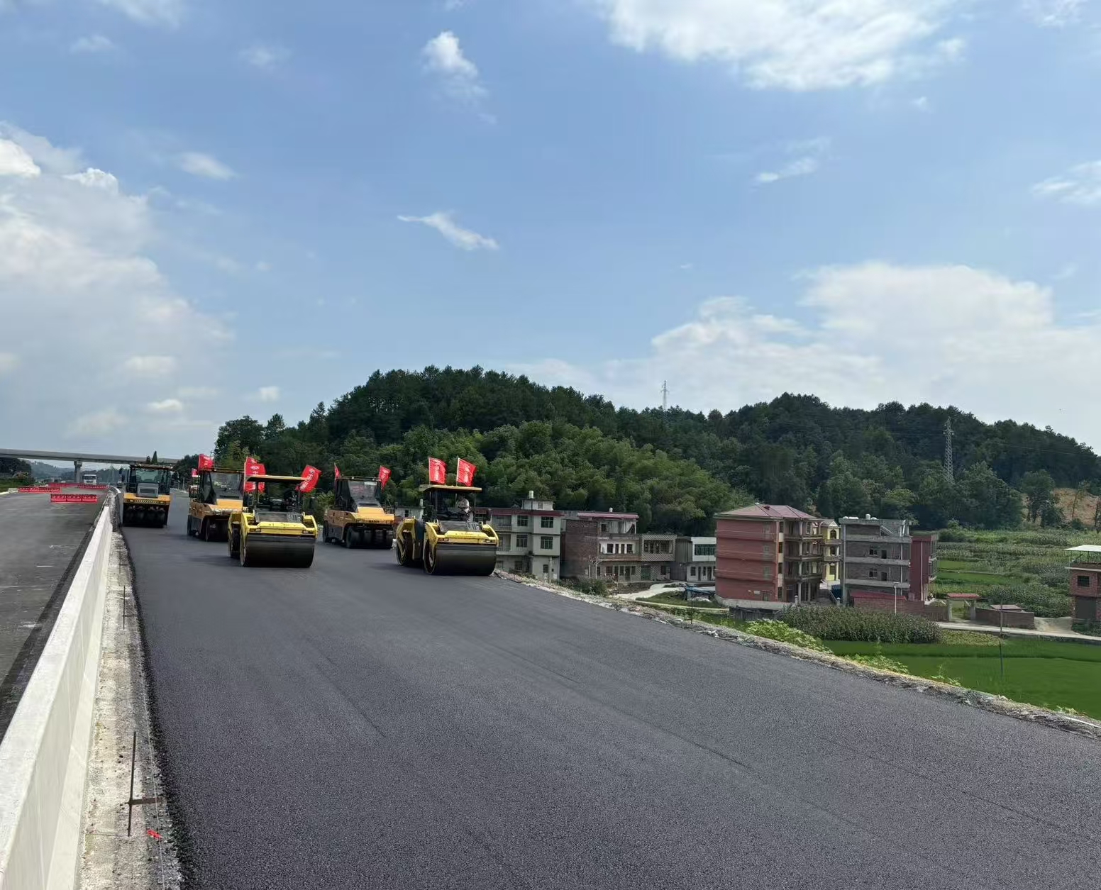 面對夏季高溫多雨等不利因素,項目部堅持“質量與進度并重”原則,提前優(yōu)化施工方案,調配攤鋪機、壓路機等20余臺大型設備,實行“兩班倒”連續(xù)作業(yè)。通過精準控制混合料配比、攤鋪厚度及壓實度,單日攤鋪量最高突破8000平方米。