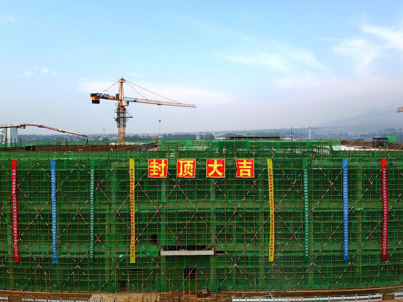 該項(xiàng)目位于包頭市九原區(qū)烏蘭計(jì)5村,阿嘎如泰鎮(zhèn)鎮(zhèn)政府東側(cè),繁榮道南側(cè),區(qū)間三路西側(cè)。項(xiàng)目規(guī)劃建設(shè)1#廠房+綜合樓,其中1#食品加工廠房17840平方米,建筑高度21.6米,結(jié)構(gòu)類型為框架結(jié)構(gòu),共3層,層高為6.6米;綜合樓為3369.70平方米,建筑高度17.8米,框架結(jié)構(gòu),共4層,首層高為4.2米,2至4層高3.9米。自開工建設(shè)以來,項(xiàng)目部始終秉持“安全第一、質(zhì)量為本”的理念,科學(xué)組織施工,精心調(diào)配資源,憑借豐富經(jīng)驗(yàn)攻克施工場(chǎng)地受限、結(jié)構(gòu)層高較高等難題,高效推進(jìn)項(xiàng)目建設(shè),用108天讓藍(lán)圖上的線條真真切切立成了實(shí)體。?