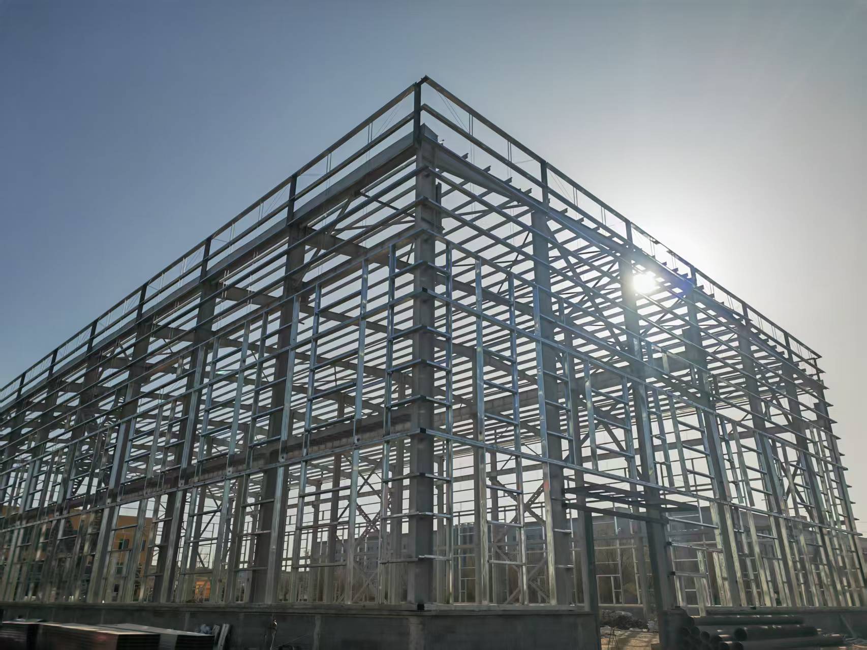 項(xiàng)目位于包頭市稀土高新技術(shù)產(chǎn)業(yè)開發(fā)區(qū)稀土路街道沼園路1號(hào),東臨金力永磁已建廠區(qū),南臨沼園路,西臨呼得木林大街,北臨稀土大街,總建筑面積53790平方米。其中,熔煉車間建筑面積 4275平方米,主體為單層門式鋼結(jié)構(gòu),高度20.15米,最大單跨跨度22.2米;氫碎車間建筑面積 2800平方米,單層門式鋼結(jié)構(gòu),高度16.65米,最大單跨跨度17.2米,是項(xiàng)目施工體量、施工難度最大的兩個(gè)單體核心工程。工程進(jìn)入主體鋼結(jié)構(gòu)施工后,項(xiàng)目部克服有效工期短、現(xiàn)場(chǎng)作業(yè)面狹窄、車間跨度大、包頭地區(qū)夏秋降雨頻繁、冬季早晚溫差大等不利條件和施工難題,投入塔吊、挖掘機(jī)等大型設(shè)備,采取“分段安裝+現(xiàn)場(chǎng)分段焊接+全站儀實(shí)時(shí)校準(zhǔn)”施工工藝和“分區(qū)分軸流水作業(yè)+24小時(shí)輪班制”作業(yè)方法,搶抓夏秋黃金施工期,掀起冬季攻勢(shì),大干快上,高效優(yōu)質(zhì)完成兩個(gè)車間鋼結(jié)構(gòu)施工任務(wù),受到業(yè)主、監(jiān)理單位的好評(píng)。