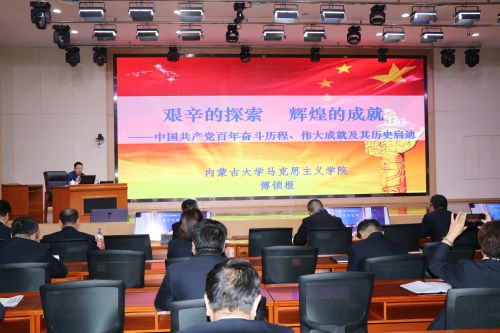 在集中學(xué)習(xí)環(huán)節(jié),公司黨委特邀請(qǐng)了內(nèi)蒙古大學(xué)馬克思主義學(xué)院副院長(zhǎng)、傅鎖根教授給大家進(jìn)行了《艱辛的探索 輝煌的成就—中國共產(chǎn)黨百年奮斗歷程、偉大成就及其歷史啟迪》專題黨史講座,傅院長(zhǎng)從“中國共產(chǎn)黨歷史發(fā)展的主題主線、主流本質(zhì);中國共產(chǎn)黨書寫的偉大成就;中國共產(chǎn)黨奮斗歷程的歷史啟示”等三個(gè)方面,用生動(dòng)的語言、豐富的案例、詳實(shí)的資料,科學(xué)系統(tǒng)地解讀了中國共產(chǎn)黨的百年奮斗歷程,對(duì)公司廣大黨員干部深刻學(xué)習(xí)領(lǐng)會(huì)、全面準(zhǔn)確把握中國共產(chǎn)黨的百年奮斗歷程,具有很強(qiáng)的針對(duì)性和指導(dǎo)性。整場(chǎng)報(bào)告主題鮮明、深入淺出、內(nèi)涵豐富、分析透徹、見解深刻,既有透徹的理論闡述,又有豐富生動(dòng)的實(shí)例;既有理論高度又有現(xiàn)實(shí)針對(duì)性,闡釋了中國共產(chǎn)黨的百年奮斗歷程的精髓,大家受益匪淺。