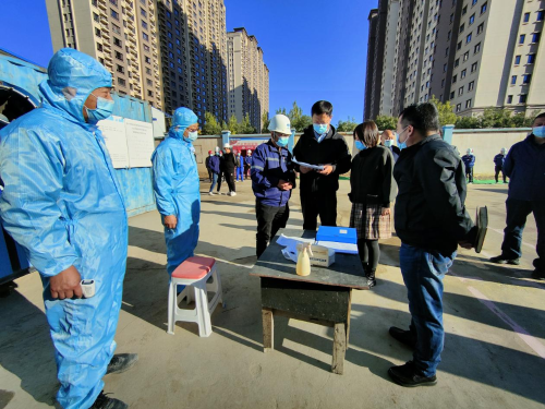 10月26日,包頭市新都市區(qū)管委會(huì)黨組書記、主任孫義一行到中國(guó)二冶都市庭苑項(xiàng)目檢查指導(dǎo),就當(dāng)前疫情防控工作提出要求。