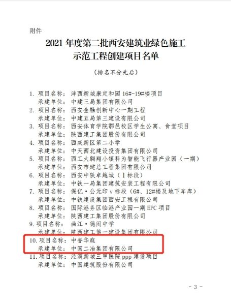 12月30日,由中國(guó)二冶承建的中譽(yù)華庭項(xiàng)目榮獲“2021年度第二批西安建筑業(yè)綠色施工示范工程”稱號(hào)。