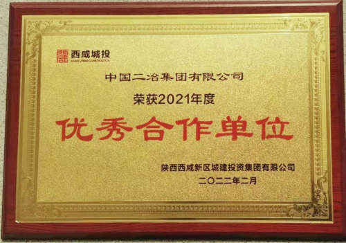 3月25日,中國二冶收到陜西西咸新區(qū)城建投資集團有限公司2021年度“優(yōu)秀合作單位”榮譽獎牌。