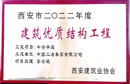 “建筑優(yōu)質(zhì)結(jié)構(gòu)工程”獎是西安市建筑行業(yè)工程質(zhì)量管理方面的權(quán)威獎項。該獎項的獲得,是西安市建筑業(yè)協(xié)會對中國二冶建筑施工生產(chǎn)實力和質(zhì)量管控專業(yè)技術(shù)能力的充分肯定,更是對中國二冶在西安市城市建設(shè)過程中的付出和為當(dāng)?shù)亟?jīng)濟(jì)發(fā)展所作貢獻(xiàn)的認(rèn)可。