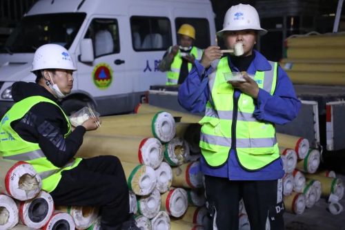 隔離點一線工作人員現(xiàn)場就地用餐