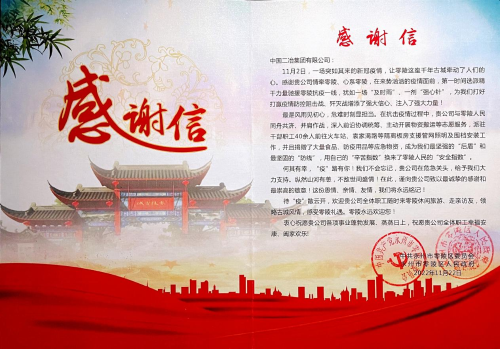 感謝信中提到,最是風(fēng)雨見初心,危難時(shí)刻顯擔(dān)當(dāng)。在抗擊疫情過程中,貴公司與零陵人民同舟共濟(jì)、并肩作戰(zhàn),深入前沿協(xié)調(diào)統(tǒng)籌、主動(dòng)開展物資搬運(yùn)等志愿服務(wù),并且捐贈(zèng)了大量食品、防疫用品等應(yīng)急物資,成為我們最堅(jiān)強(qiáng)的“后盾”和最堅(jiān)固的“防線”,用自己的“辛苦指數(shù)”換來了零陵人民的“安全指數(shù)”。感謝中國二冶集團(tuán)濱江新城康養(yǎng)綜合體項(xiàng)目部全體員工對(duì)防疫工作的貢獻(xiàn)與付出。