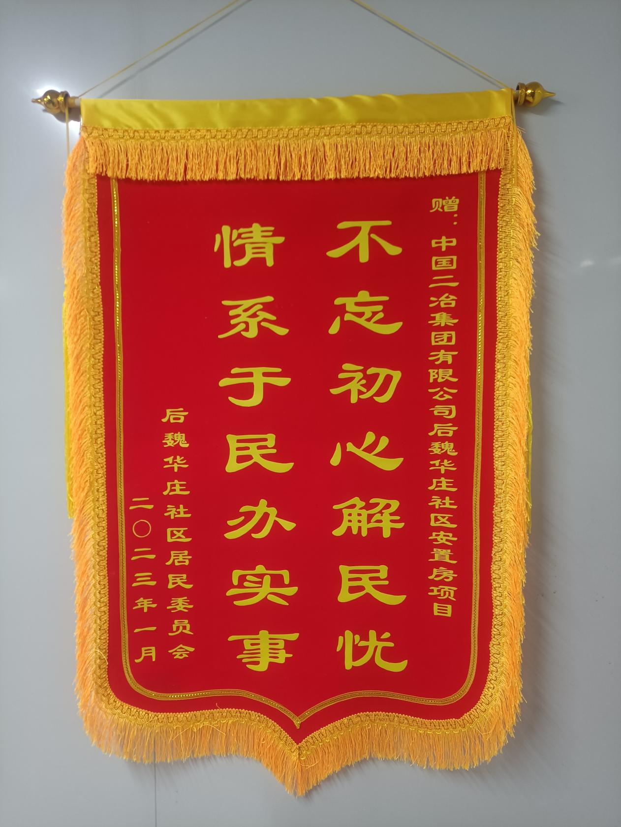 1月10日,中國二冶收到來自濟南后魏華莊社區(qū)居民委員、魏華國新區(qū)物業(yè)的兩面錦旗。一面印有“不忘初心解民憂,情系于民辦實事”、一面印有“愛心奉獻,情系社區(qū)”,感謝中國二冶濟南后魏華莊房項目部在項目建設、疫情防控等工作中的突出貢獻。