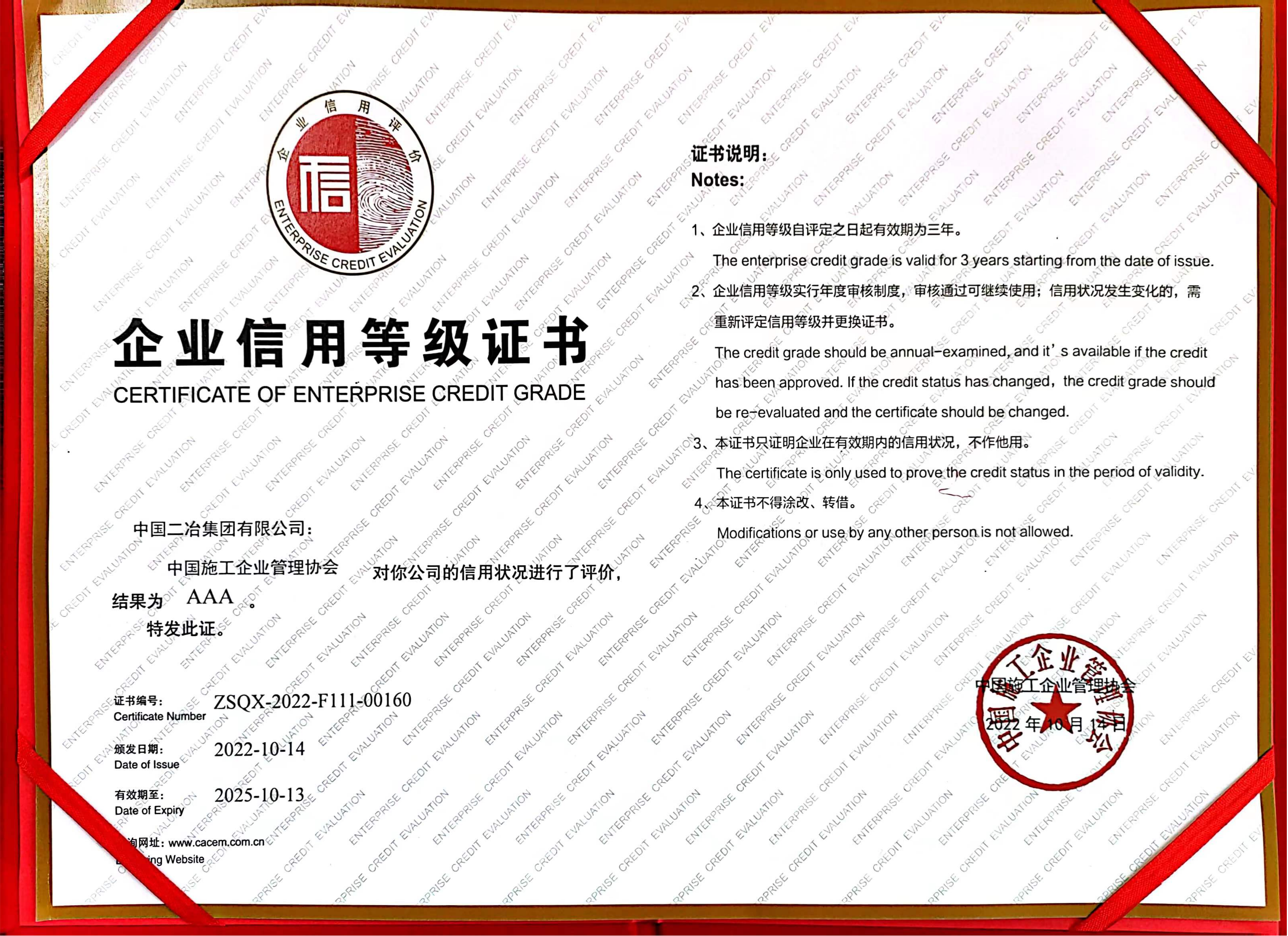 公司已連續(xù)12年保持中國(guó)工程建設(shè)AAA信用等級(jí)記錄,并連續(xù)7年榮獲中國(guó)工程建設(shè)誠(chéng)信典型企業(yè)榮譽(yù)稱號(hào)。誠(chéng)信建設(shè)是企業(yè)持續(xù)發(fā)展的需要,是企業(yè)的無形資產(chǎn)與核心競(jìng)爭(zhēng)力。公司將繼續(xù)秉承“誠(chéng)實(shí)守信、合作共贏”的經(jīng)營(yíng)理念,推動(dòng)公司履約提升、穩(wěn)健經(jīng)營(yíng)、良性發(fā)展,實(shí)現(xiàn)冶金建設(shè)國(guó)家隊(duì),基本建設(shè)主力軍先鋒隊(duì)、新興產(chǎn)業(yè)領(lǐng)跑者排頭兵的發(fā)展戰(zhàn)略目標(biāo)。