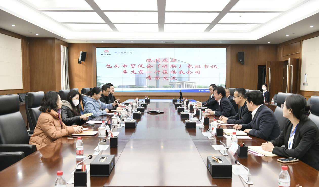 徐永鋒對李文霞一行的到訪表示熱烈歡迎,并簡要介紹了中國二冶的歷史發(fā)展沿革。他表示,在中國五礦、中冶集團的正確領(lǐng)導(dǎo)和包頭市委市政府的大力支持下,中國二冶憑借在鋼鐵冶金領(lǐng)域積累的雄厚技術(shù)優(yōu)勢成功轉(zhuǎn)型,在基本建設(shè)、新興產(chǎn)業(yè)領(lǐng)域取得優(yōu)異成績,各大業(yè)務(wù)板塊穩(wěn)健發(fā)展。2022年中國二冶主要經(jīng)營指標(biāo)實現(xiàn)逆勢增長、再創(chuàng)新高,得到社會各界的高度評價。近年來,中國二冶以中華人民共和國援建項目為契機,積極拓展蒙古國海外市場,現(xiàn)已擁有蒙古國最高建筑資質(zhì),在對接海外工程中積累了寶貴經(jīng)驗,“走出去”戰(zhàn)略取得階段性進展。包頭市貿(mào)促會(僑聯(lián))的發(fā)展定位高遠(yuǎn),是中國二冶深入落實“走出去”發(fā)展戰(zhàn)略的重要橋梁。中國二冶將全力做好海外工程,充分發(fā)揮央企優(yōu)勢,與包頭市貿(mào)促會(僑聯(lián))加強全面合作關(guān)系,在海外工程各個領(lǐng)域研究合作模式,建立由點到面、自下而上全方位的戰(zhàn)略合作關(guān)系,創(chuàng)造更多互利共贏的合作成果,共同打造包頭市政企合作新典范。