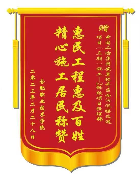 3月12日,合肥職業(yè)技術(shù)學(xué)院副院長一行四人為中國二冶安巢經(jīng)開區(qū)雨污混接改造項(xiàng)目送來錦旗,對項(xiàng)目部攻克重重難關(guān),圓滿完成學(xué)院雨污管道的改造任務(wù),為學(xué)院校慶工作順利進(jìn)行提供保證,同時(shí)對施工中彰顯出的社會(huì)責(zé)任與擔(dān)當(dāng)給予肯定和贊揚(yáng)。