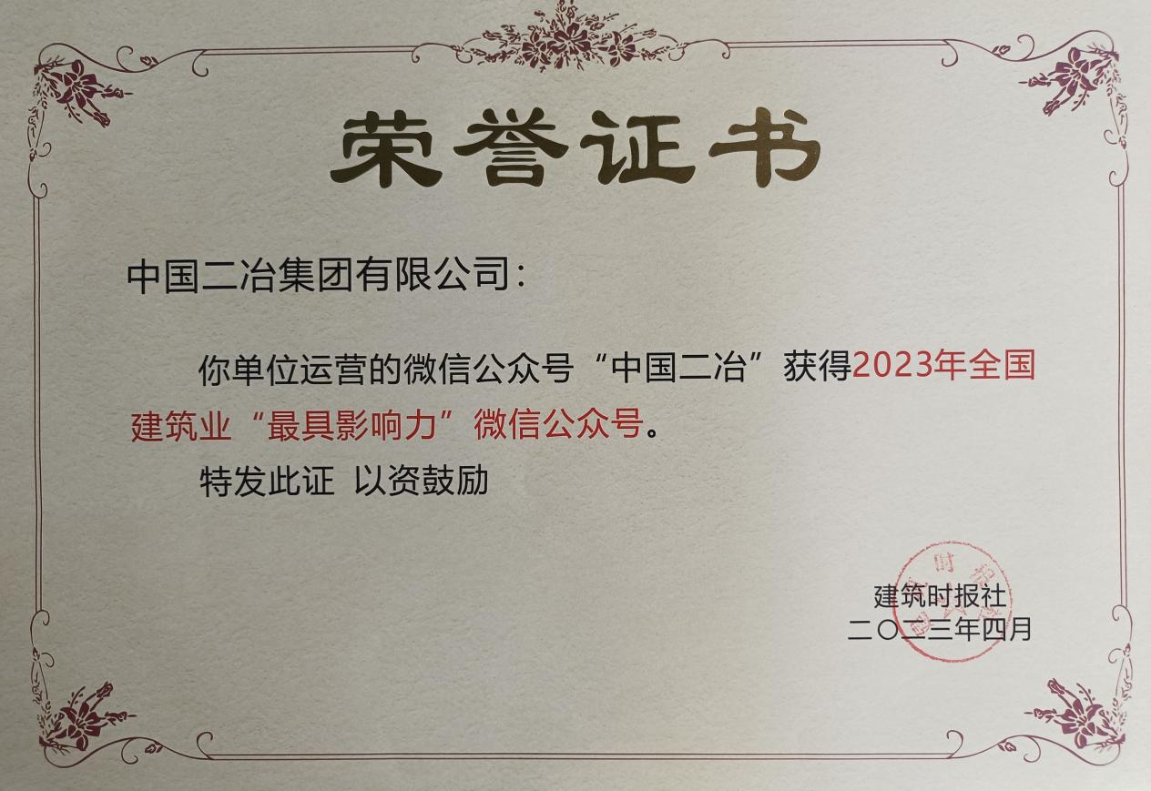 4月20日,由建筑時(shí)報(bào)主辦、中國(guó)建筑業(yè)協(xié)會(huì)指導(dǎo)的2023年建筑業(yè)微信公眾號(hào)運(yùn)維經(jīng)驗(yàn)交流研討會(huì)暨全國(guó)建筑業(yè)優(yōu)秀公眾號(hào)頒獎(jiǎng)典禮在廣西南寧市舉辦,中國(guó)二冶微信公眾號(hào)“中國(guó)二冶”被授予2023年“全國(guó)建筑業(yè)最具影響力微信公眾號(hào)”榮譽(yù)稱(chēng)號(hào),中國(guó)二冶西北分公司、路橋分公司、城建分公司運(yùn)維的微信公眾號(hào)榮獲“全國(guó)建筑業(yè)優(yōu)秀微信公眾號(hào)”榮譽(yù)稱(chēng)號(hào)。