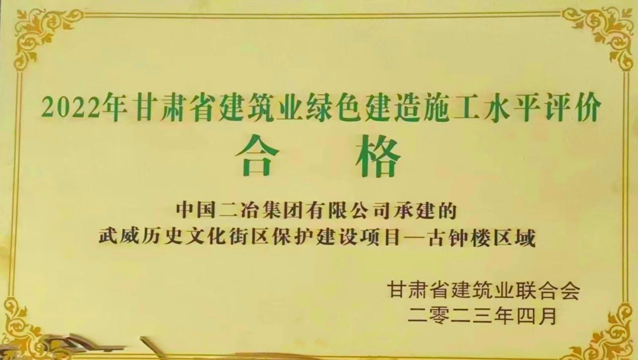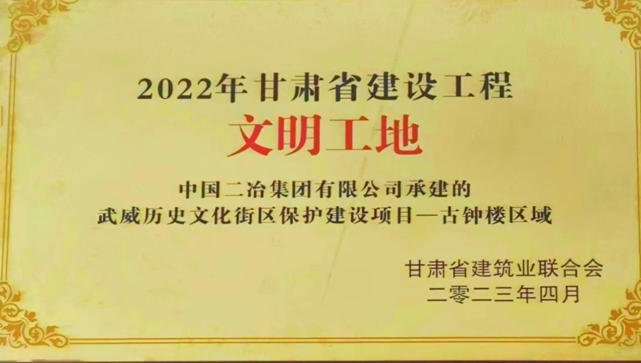 4月25日,甘肅省建筑業(yè)聯(lián)合會公布2022年甘肅省建筑工程文明工地、綠色建造施工水平評價合格項目評選結(jié)果,中國二冶承建的武威歷史文化街區(qū)保護(hù)建設(shè)項目榮獲2022年度甘肅省級文明工地及省級綠色建造工地榮譽稱號。
