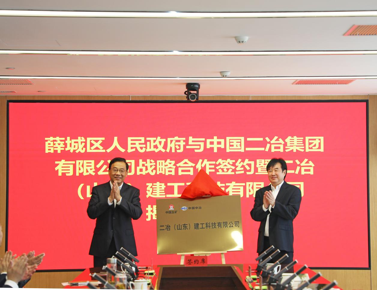 5月7日,棗莊市薛城區(qū)人民政府與中國二冶集團戰(zhàn)略合作簽約暨二冶(山東)建工科技有限公司揭牌儀式在棗莊市薛城區(qū)順利舉行。中國二冶集團黨委書記、董事長徐永鋒與棗莊市委常委、副市長邵士官共同為二冶(山東)建工科技有限公司揭牌;山東分公司總經(jīng)理郝寶成與薛城區(qū)委副書記樊猛代表雙方簽訂戰(zhàn)略合作協(xié)議。中國二冶集團副總經(jīng)理常志成參加儀式。