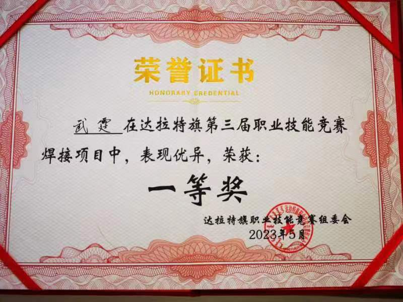 5月28日,中國二冶青年員工武霆在第三屆達拉特旗職業(yè)技能競賽中勇奪焊接比賽第一名。