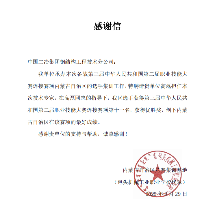 經(jīng)過(guò)系統(tǒng)指導(dǎo)與刻苦訓(xùn)練,高磊帶領(lǐng)的參賽選手在全國(guó)百余支隊(duì)伍的激烈角逐中脫穎而出,最終榮獲大賽焊接賽項(xiàng)第十一名,獲得優(yōu)勝獎(jiǎng),創(chuàng)下內(nèi)蒙古自治區(qū)在該賽項(xiàng)的最好成績(jī)。