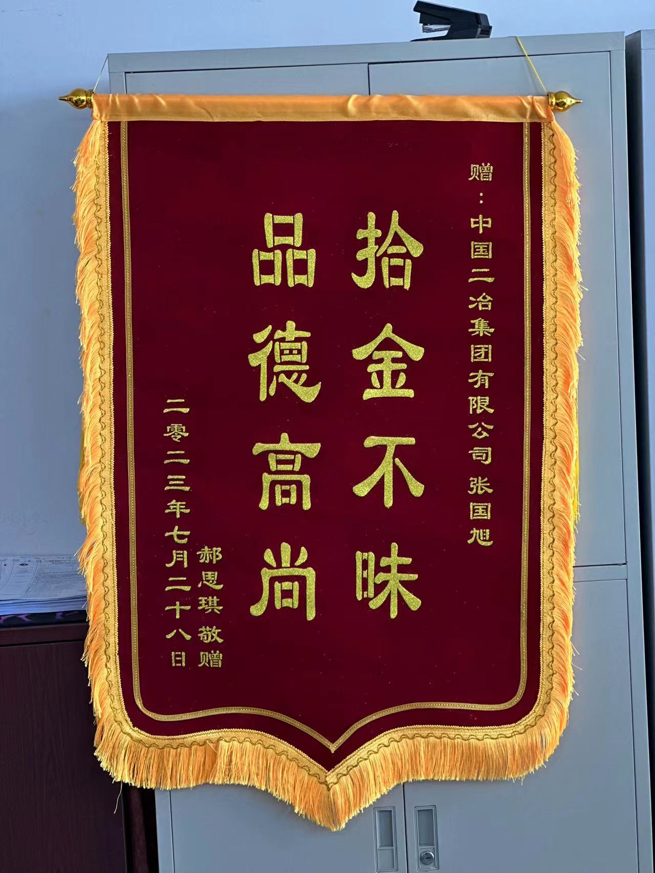 7月28日,中國二冶收到一份“意外”的表揚(yáng)信和一面錦旗。信中用樸實(shí)的言語對(duì)中國二冶新入職大學(xué)生張國旭拾金不昧的精神表示了贊揚(yáng)與感謝。