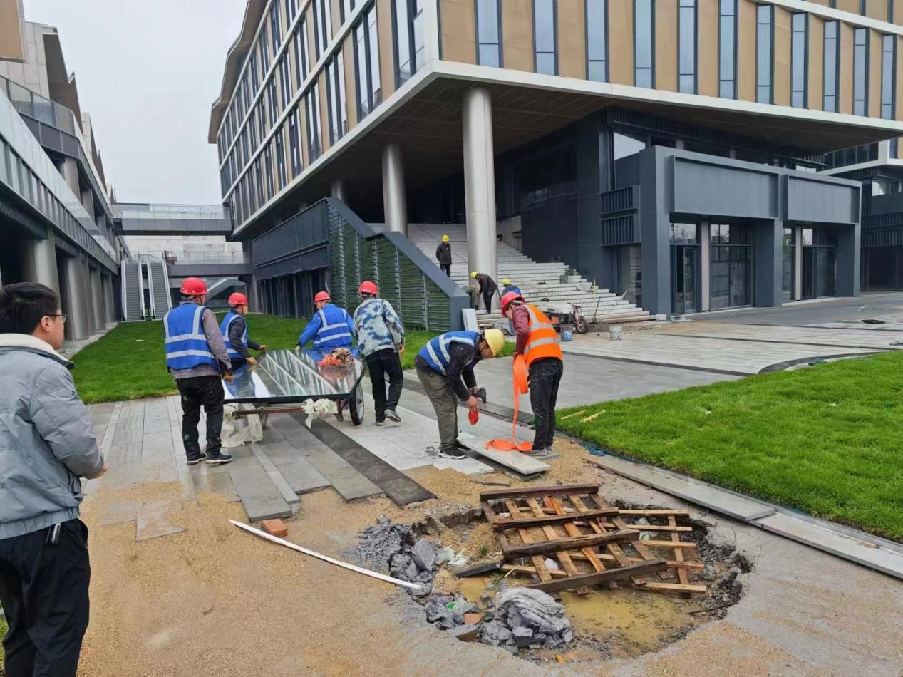 在如意東路便民服務(wù)中心項(xiàng)目施工現(xiàn)場(chǎng),項(xiàng)目負(fù)責(zé)人帶頭加班加點(diǎn)、爭(zhēng)分奪秒投入項(xiàng)目工作中。目前主體工程已全部完成,道路硬化完成,幕墻工程、水電安裝工程、消防安裝工程、精裝工程、景觀工程均在收尾中。確保進(jìn)度的同時(shí)項(xiàng)目部細(xì)心施工,精益求精,堅(jiān)持將安全文明施工落實(shí)到位,全力保障竣工驗(yàn)收,確保雙過(guò)半。
