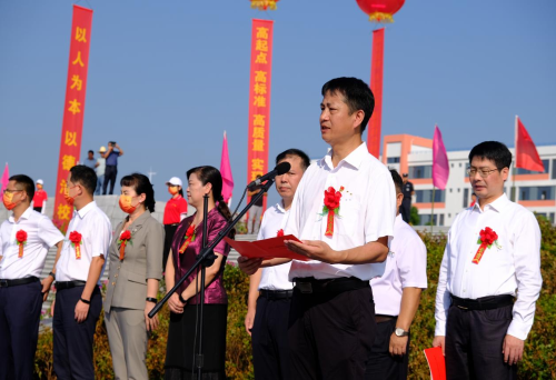劉朝暉在致辭中首先代表縣委、縣人大、縣政府、縣政協(xié),向夜以繼日奮戰(zhàn)的中國(guó)二冶施工人員、項(xiàng)目指揮部工作人員和承建單位表示衷心感謝!廣大建設(shè)者克服了重重困難,歷經(jīng)了千辛萬(wàn)苦,全體參與項(xiàng)目建設(shè)的同志們發(fā)揚(yáng)“三牛”精神,吃苦耐勞,攻堅(jiān)克難,奮戰(zhàn)1300多個(gè)日日夜夜,終于建成了一座占地400畝、學(xué)位6000個(gè)的現(xiàn)代化新高中,向全縣人民兌現(xiàn)了莊嚴(yán)承諾,也讓70萬(wàn)永興人民充分感受到縣委縣政府致力于改善民本民生的堅(jiān)定決心。他強(qiáng)調(diào),優(yōu)質(zhì)教育質(zhì)量的均衡發(fā)展一直是困擾當(dāng)?shù)乜h鄉(xiāng)兩級(jí)教育事業(yè)發(fā)展的一個(gè)難題。今天新校區(qū)的揭牌意味著永興一中即將揚(yáng)帆遠(yuǎn)航,永興一中要以揭牌和開學(xué)為新起點(diǎn),瞄準(zhǔn)高標(biāo)準(zhǔn),高質(zhì)量,高品位目標(biāo),提高教育質(zhì)量,辦出教育品牌,努力把學(xué)校創(chuàng)辦成管理一流,特色鮮明的義務(wù)教育標(biāo)桿學(xué)校。