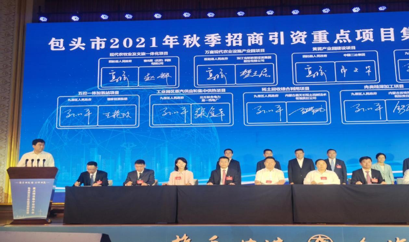 本次集中簽約項(xiàng)目共 45 個(gè),計(jì)劃總投資 1160 億元,涉及 14 個(gè)產(chǎn)業(yè)領(lǐng)域。簽約大會(huì)由中共包頭市委員會(huì)、包頭市人民政府主辦。本次大會(huì)簽約項(xiàng)目主要集中在綠色低碳領(lǐng)域。通過(guò)現(xiàn)場(chǎng)簽約與網(wǎng)絡(luò)簽約相結(jié)合的模式。其中,現(xiàn)場(chǎng)簽約項(xiàng)目共26個(gè)、網(wǎng)絡(luò)視頻簽約項(xiàng)目共19個(gè),共簽訂合作項(xiàng)目45個(gè),簽約項(xiàng)目中涉及世界500強(qiáng)企業(yè)6個(gè)、中國(guó)500強(qiáng)企業(yè)4個(gè)、中國(guó)民營(yíng)500強(qiáng)企業(yè)2個(gè)。計(jì)劃總投資 1160億元,助力綠色低碳環(huán)保循環(huán)經(jīng)濟(jì)持續(xù)發(fā)展。